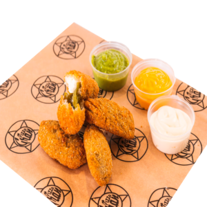 Totopos de maíz al horno, con nuestra mezcla de quesos fundidos, cheddar, crema agria, pico de gallo, guacamole y jalapeños